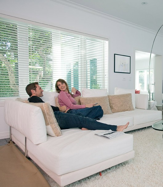 For at fuldende looket i stuen kan du også kombinere indvendige solafskærmninger ovenfor med ”almindelige” gardiner. De giver din stue et hyggeligt look, ligesom foldegardiner, og tilføjer ekstra stemning, hvis du kombinerer dem med persienner eller rullegardiner.