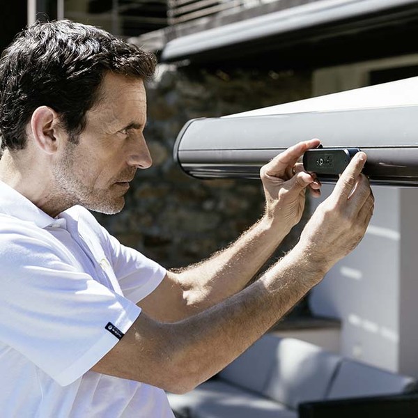 Somfy har den rette motor og betjening til alle typer og mærker af solafskærmning og rulleskodder. Ønsker du at udvide installationen nu eller senere med klimasensorer til beskyttelse af din dyrebare solafskærmning? De aktive sensorer fra Somfy giver dig mere indre ro. Du kan gå hjemmefra ganske roligt, selv med markisen ude. Hvis vejret pludselig skifter, vil vind- eller solsensoren bevise sin nytte. Markisen kører ind til tiden.