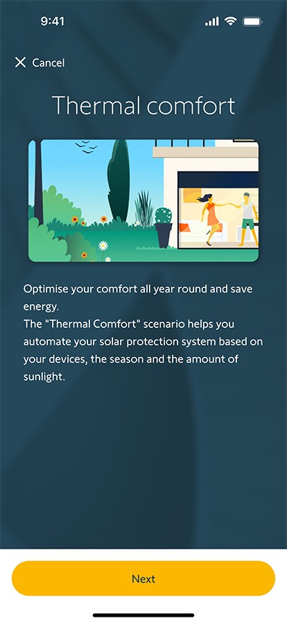 Det er nemt at opnå mere komfort både inde og ude hele året rundt. Forbind dine rullegardiner, gardiner, markiser og mange andre enheder i hjemmet til TaHoma® switch, Somfys smart home-hub. Dit smart home forbedrer din termiske komfort for dig.